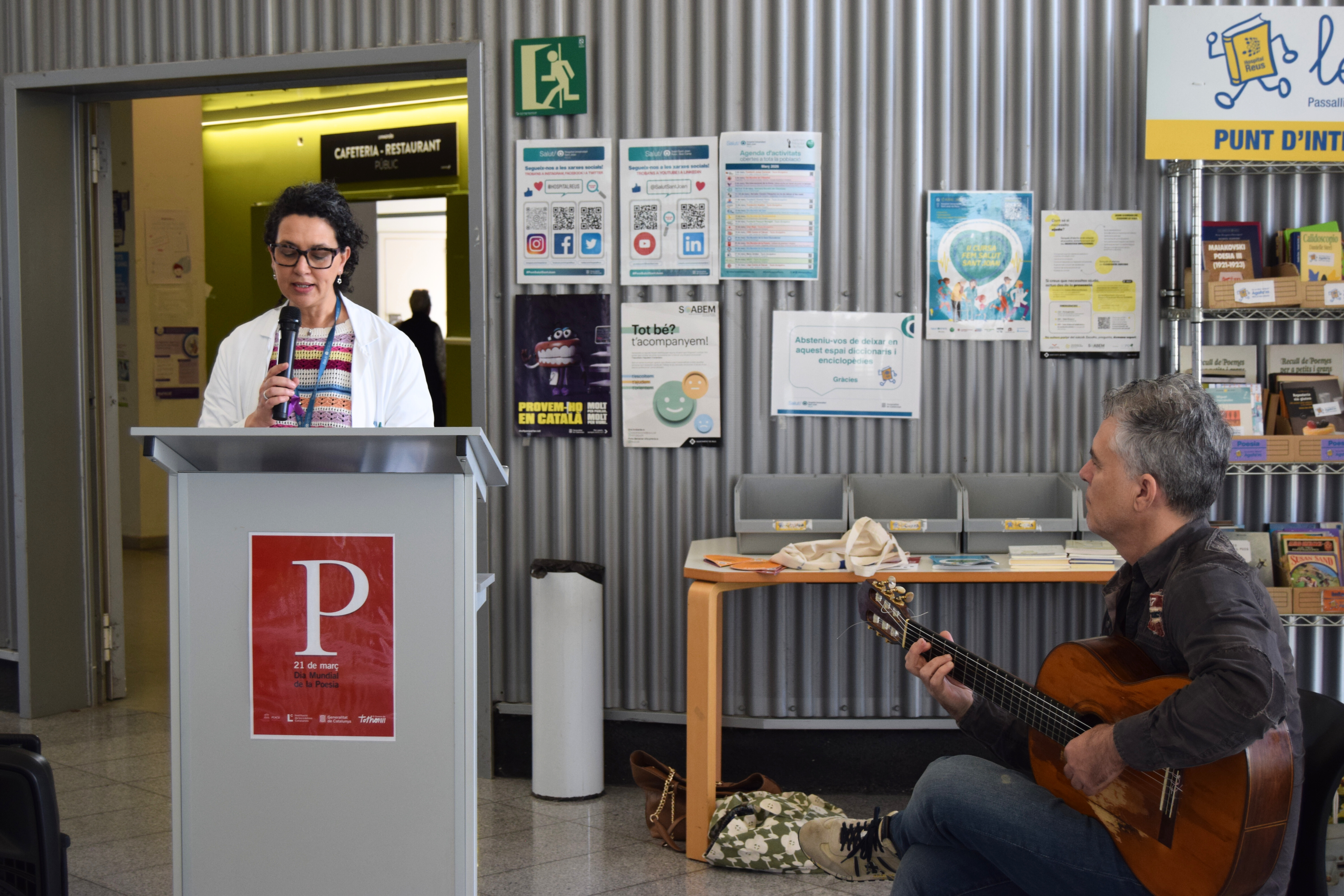 Per commemorar el Dia Mundial de la Poesia, que és el dissabte 21 de març, l'Hospital Universitari Sant Joan de Reus, en col·laboració amb les Biblioteques Municipals de Reus i l'Associació Amics de l'Hospital, han organitzat una lectura de poemes a la rambla de l'Hospital aquest divendres, 20 de març, just al punt de lectura del passallibres. Hi han participat professionals del centre, voluntaris de l'Associació Amics de l'Hospital, i professionals de les Biblioteques Municipals de Reus, així com pacients del centre. A més, l'acte ha estat acompanyat per música en directe de l'entitat Ars et Corpus.