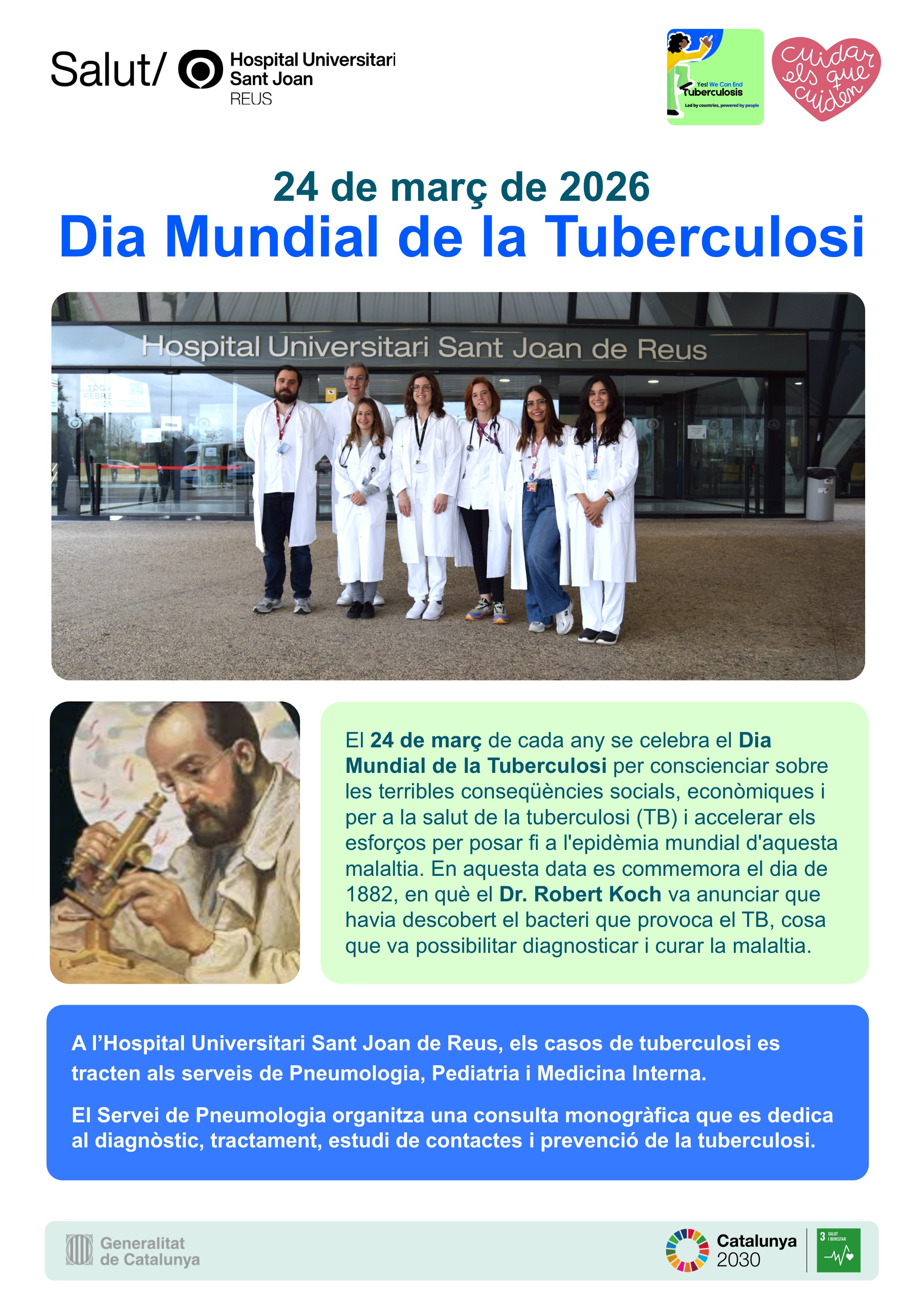 Cada 24 de març se celebra el Dia Mundial de la Tuberculosi per conscienciar sobre les terribles conseqüències socials, econòmiques i per a la salut de la tuberculosi (TB) i accelerar els esforços per posar fi a l'epidèmia mundial d'aquesta malaltia. En aquesta data es commemora el dia de 1882, en què el Dr. Robert Koch va anunciar que havia descobert el bacteri que provoca el TB, cosa que va possibilitar diagnosticar i curar la malaltia.