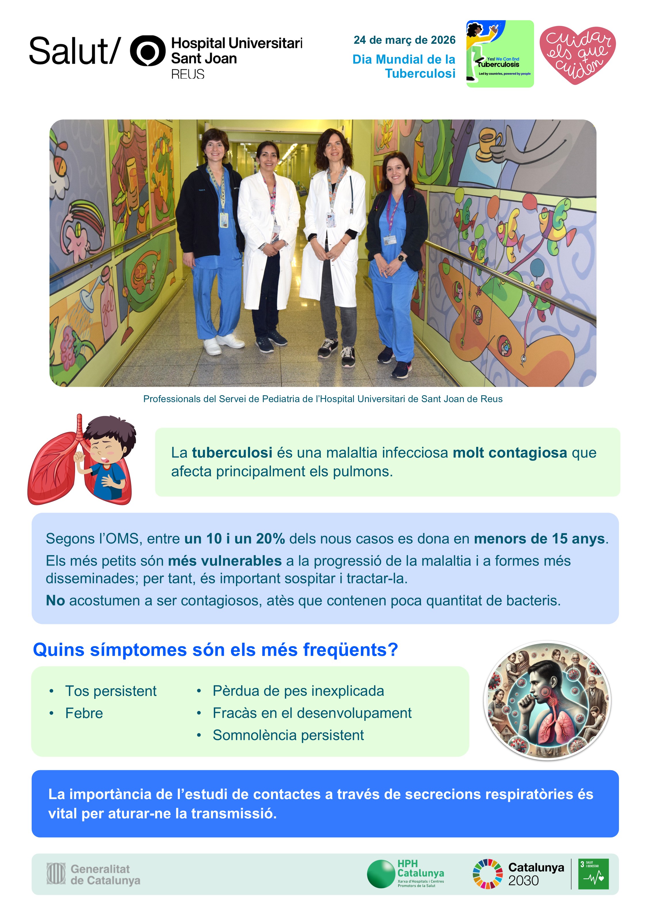 A l'Hospital Universitari Sant Joan de Reus, els casos de tuberculosi es tracten als serveis de Pneumologia, Pediatria i Medicina Interna. El Servei de Pneumologia organitza una consulta monogràfica que es dedica al diagnòstic, tractament, estudi de contactes i prevenció de la tuberculosi.