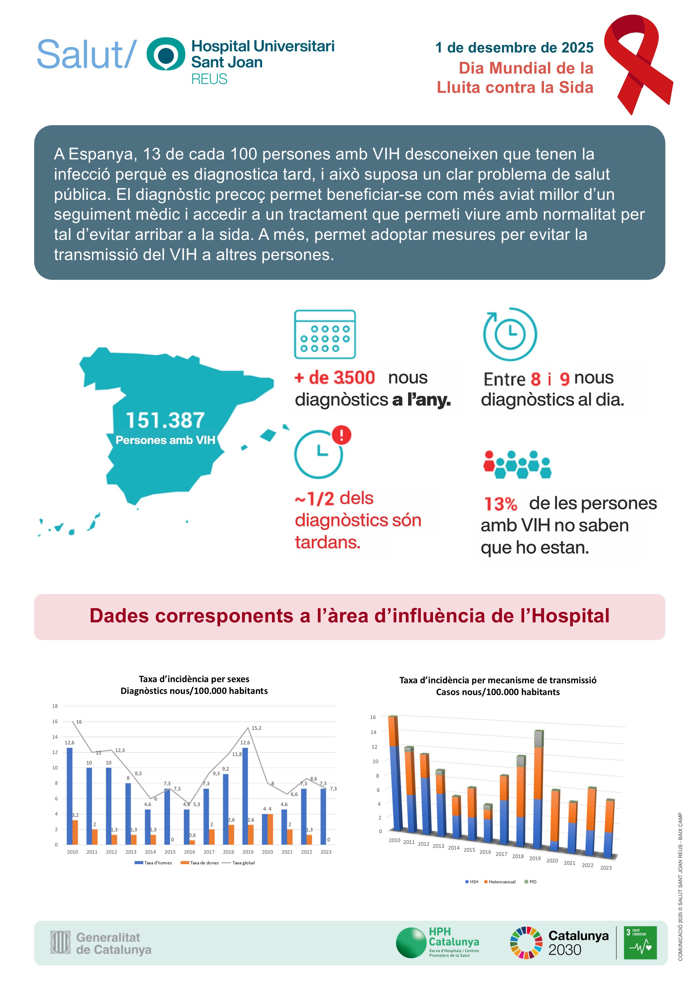 Actualment, a Catalunya hi ha més de 33.000 persones que conviuen amb el VIH, però no és un problema del passat, atès què continua havent-hi una taxa d'infeccions al nostre medi al voltant de 6-8 casos nous per 100.000 habitants i any. Com que la via de transmissió majoritària avui dia és la via sexual, qualsevol persona que manté relacions sexuals es pot contagiar pel VIH si no es prenen les mesures adequades.