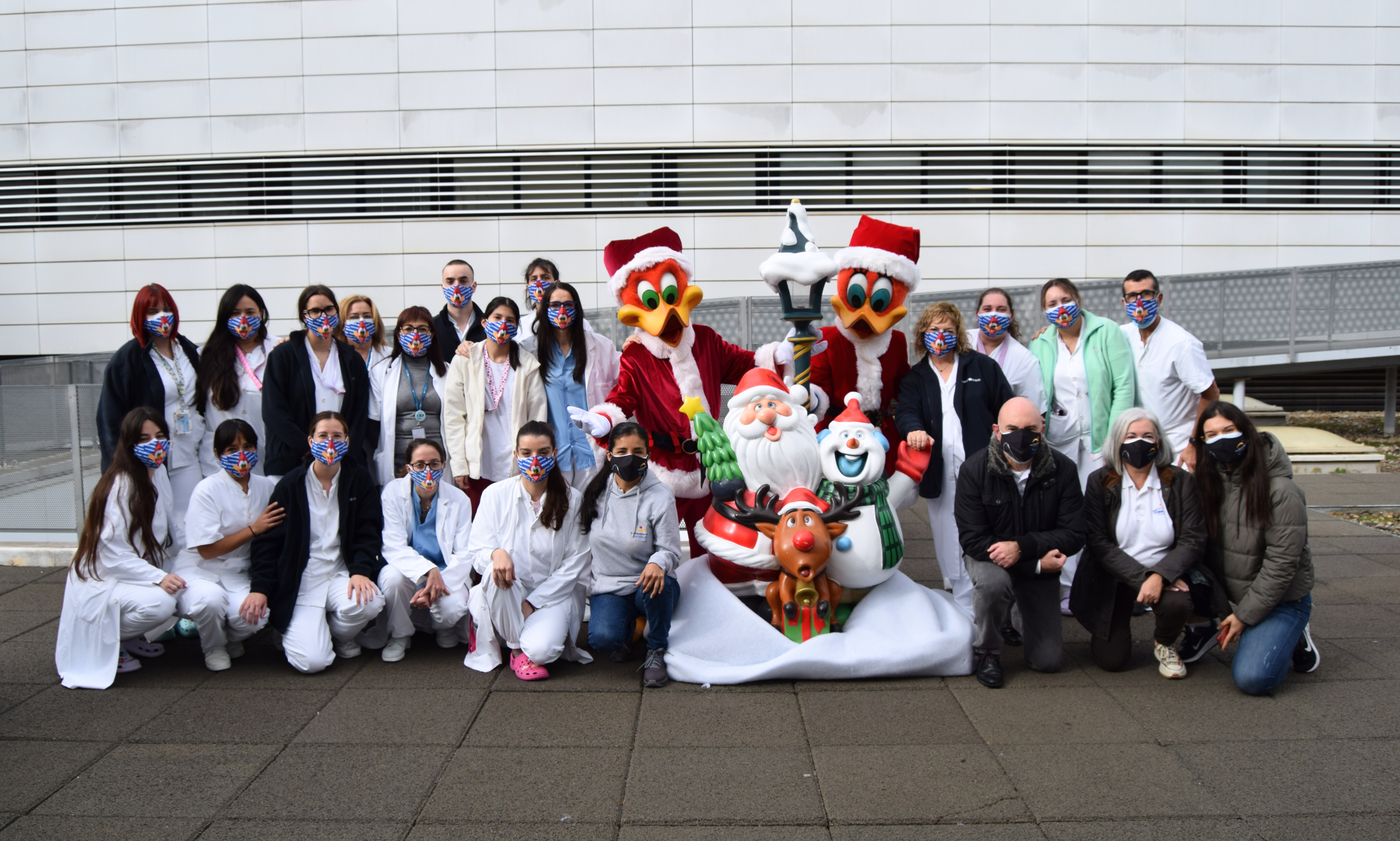Per tal que els més petits poguessin participar de la visita tot respectant les mesures de seguretat establertes per increment d'infeccions respiratòries, el Woody i la Winnie han accedit al pati interior on donen les finestres de les habitacions de l'àrea de pediatria. Aquest pati està decorat amb motius de Nadal cedits per la Fundació Port Aventura, que un any més ha volgut col·laborar amb l'Hospital per poder acostar la màgia de Nadal als més petits.