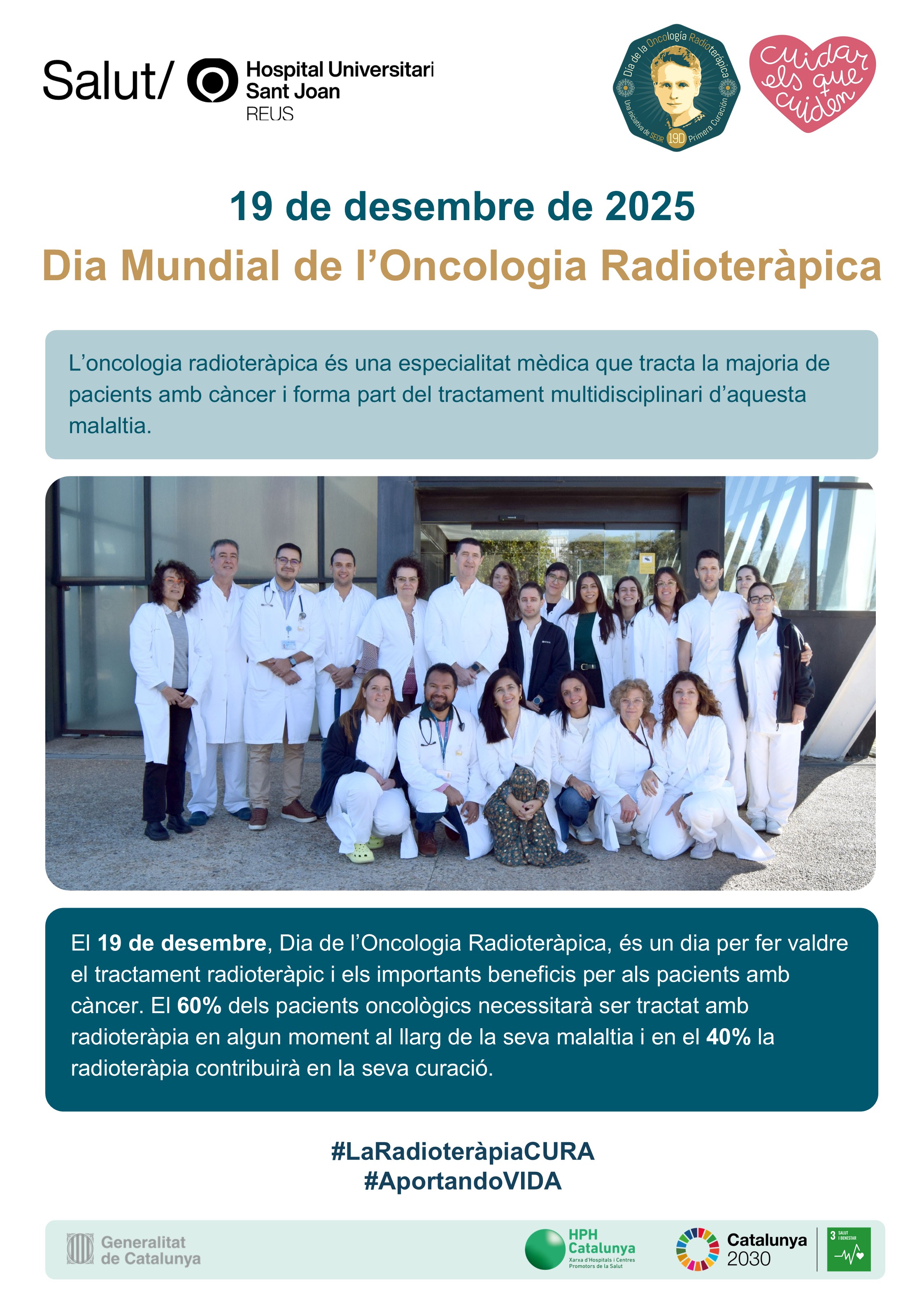 El Dia de l'Oncologia Radioteràpica (19 de desembre) és un dia per fer valdre el tractament radioteràpic i els importants beneficis per als pacients amb càncer. El 60% dels pacients oncològics necessitarà ser tractat amb radioteràpia en algun moment al llarg de la seva malaltia. I en el 40% d'aquests, la radioteràpia contribuirà en la seva curació. I és que l'oncologia radioteràpica és una especialitat mèdica que tracta la majoria dels pacients amb càncer i forma part del tractament multidisciplinari d'aquesta