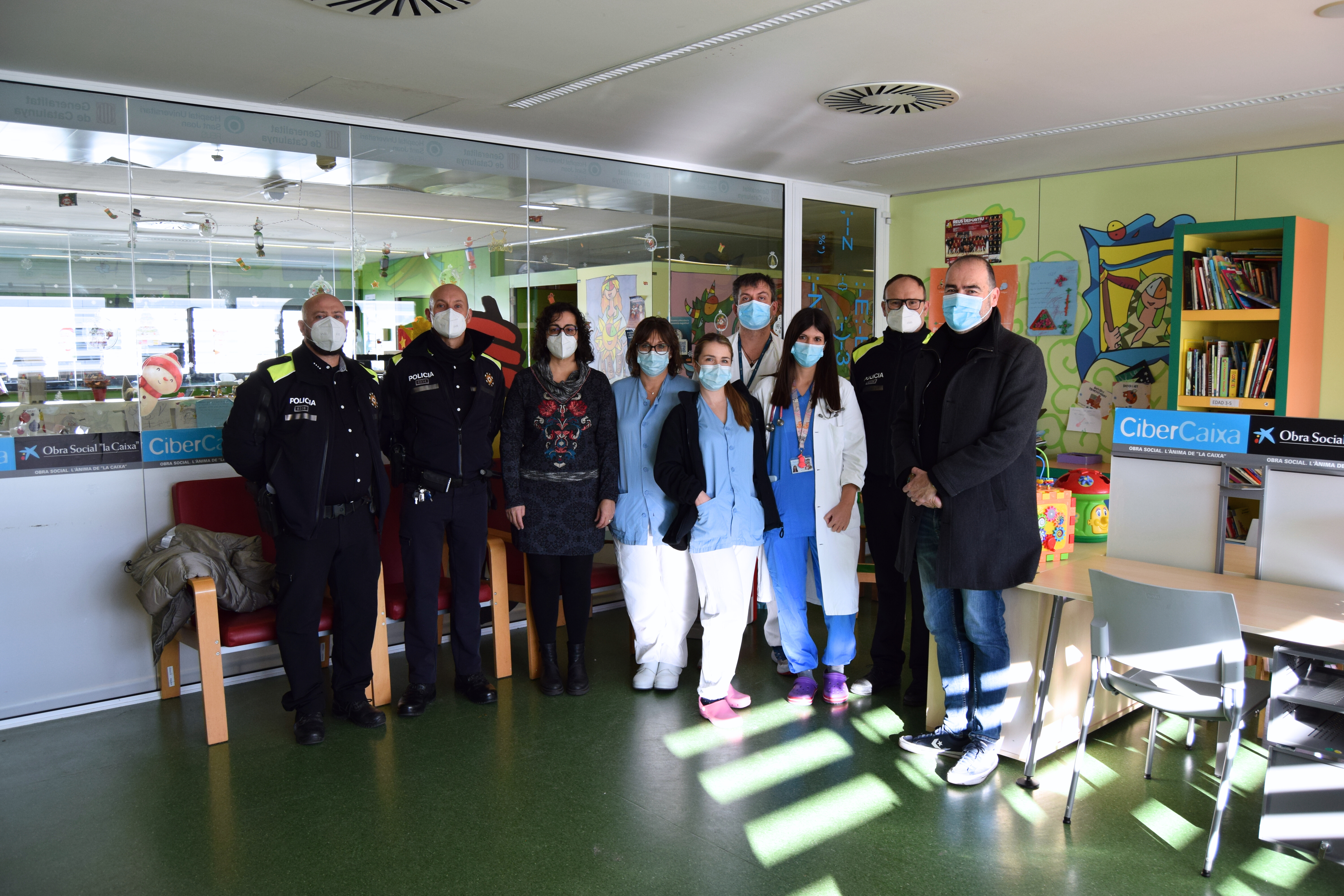La visita s'ha fet respectant les mesures de seguretat establertes arran de l'increment d'infeccions respiratòries, i els regals s'han dipositat a l'arbre de Nadal situat a la porta principal del centre. Posteriorment, els agents i els regidors han pujat a planta per visitar alguns nens i nenes ingressats. Després, el personal d'infermeria s'ha encarregat de repartir tots els regals entre els infants.